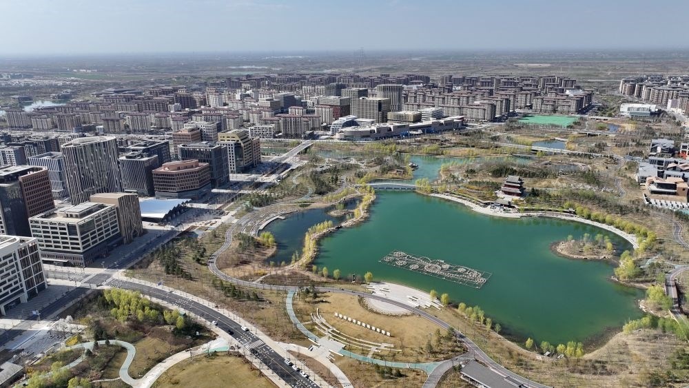 ↑這是3月28日拍攝的雄安新區(qū)中關(guān)村科技園。