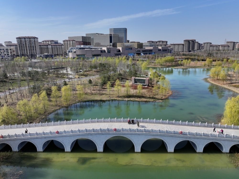 ↑這是雄安新區(qū)金湖公園(3月29日攝,無人機(jī)照片)。