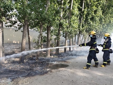 圖三:2023年5月2日,河南省濟源市消防救援支隊濟瀆路特勤站在處置飛絮引發(fā)的火情(來源:新華社)