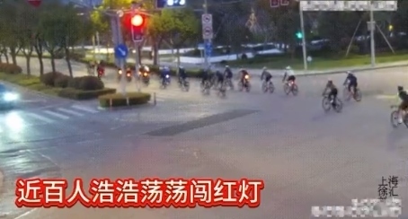 ·“暴騎團(tuán)”近百人無視交規(guī)闖紅燈,上海交警開展專項(xiàng)整治。
