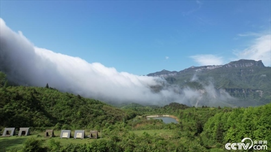 2024年4月26日,重慶,金佛山風(fēng)吹嶺雨后出現(xiàn)罕見(jiàn)的云瀑景觀。