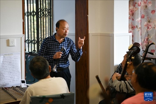 4月15日,樂隊(duì)指揮王存大為大家講解演奏細(xì)節(jié)。新華社記者 胥冰潔 攝
