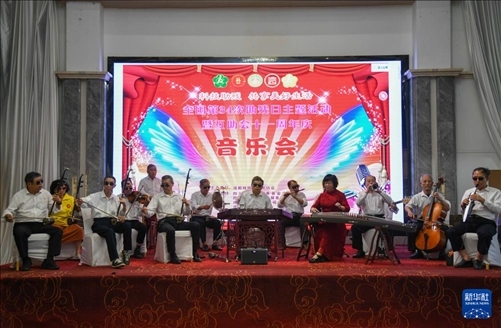 5月13日,“自強(qiáng)不息藝術(shù)團(tuán)盲人樂隊(duì)”成員在周年慶上演出。新華社記者 胥冰潔 攝