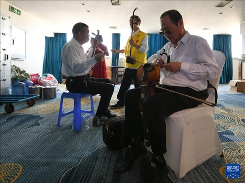 5月13日,“自強(qiáng)不息藝術(shù)團(tuán)盲人樂隊(duì)”成員準(zhǔn)備登臺演出。新華社記者 胥冰潔 攝