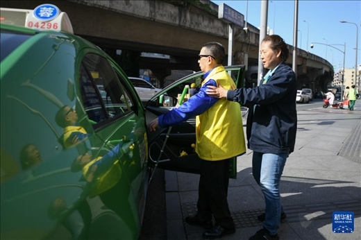 5月13日,張世維在成都雷鋒車隊(duì)志愿者幫助下乘車前往周年慶活動現(xiàn)場。新華社記者 胥冰潔 攝