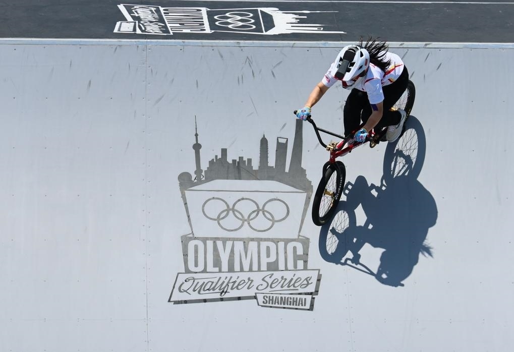 5月18日,在上海舉行的巴黎奧運會資格系列賽上海站小輪車自由式女子公園賽決賽中,中國選手孫思蓓以95.86分的成績獲得冠軍。新華社記者 許雅楠 攝