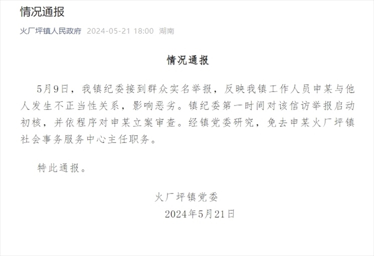 ·“公職人員婚內(nèi)出軌女子”照片傳出,官方通報(bào):涉事人員免職。
