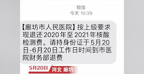 ·廊坊醫(yī)院通知“退核酸檢測(cè)費(fèi)”后很多人排隊(duì)退費(fèi),院方:符合條件的才退。