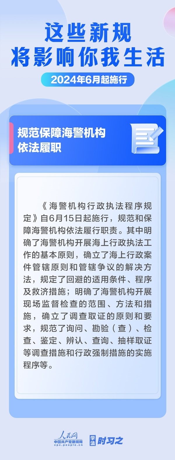 保障糧食有效供給;確立生態(tài)保護補償基本制度規(guī)則;規(guī)范保障海警機構(gòu)依法履職……6月起,這些新規(guī)施行,將影響你我生活。