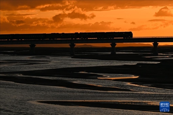 初夏時(shí)節(jié),青藏鐵路與高山、河流相映成趣,壯美絢麗。