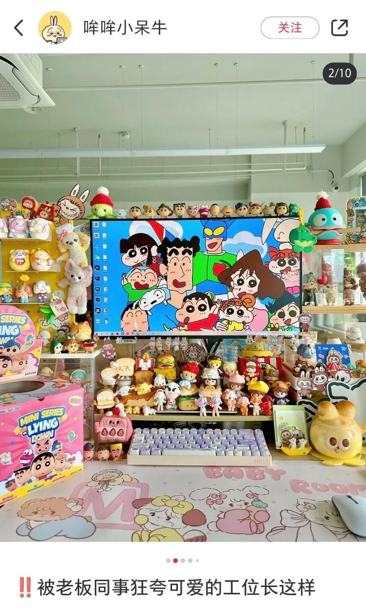 近日,杭州一女生一年內花1萬元改造工位引熱議。報道稱小秦因為平時喜歡收集盲盒手辦,所以在工位上也擺滿了潮玩,她回應這樣做能提升工作幸福感,“雖然工位是公司的,但快樂是自己的”。隨著很多盲盒的漲價,現(xiàn)在她的工位價值已經超過2萬元。