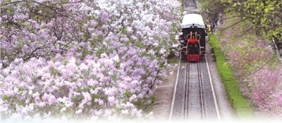 哈爾濱市兒童公園小火車(chē)在丁香花海中穿行。張 樹(shù)攝(影像中國(guó))
