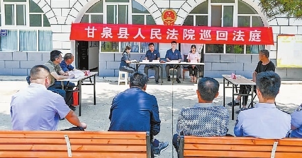 近日,陜西省甘泉縣人民法院道鎮(zhèn)人民法庭在審理一起侵害集體經(jīng)濟(jì)組織成員權(quán)益糾紛案件時(shí),考慮到本案為該區(qū)域多發(fā)常見類糾紛,遂將巡回審判庭搬進(jìn)道鎮(zhèn)五里橋村,在窯洞前就地審理。庭審中,法官充分聽取雙方當(dāng)事人意見,就爭議焦點(diǎn)進(jìn)行釋法明理。經(jīng)過一個(gè)多小時(shí)的調(diào)解,雖因雙方訴求差距過大未最終達(dá)成調(diào)解協(xié)議,但極大緩和了雙方矛盾。下一步,法官將繼續(xù)就雙方當(dāng)事人的訴求研判方案,組織調(diào)解。庭審結(jié)束后,法官向群眾介紹了本案相關(guān)的法律規(guī)定,就大家關(guān)心的法律問題進(jìn)行答疑解惑。圖為巡回審判現(xiàn)場。(本報(bào)記者 劉輝 本報(bào)通訊員 李樂 攝)