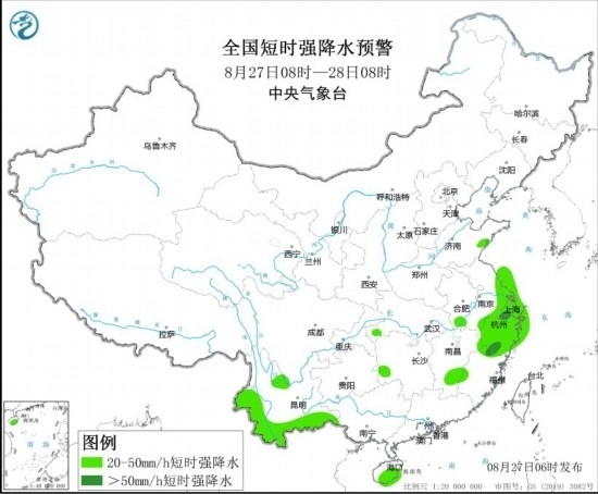 中新網(wǎng)8月27日電 據(jù)中央氣象臺網(wǎng)站消息,中央氣象臺8月27日6時發(fā)布強對流天氣藍色預警:預計8月27日8時至28日8時,內蒙古地區(qū)東北部、江淮東部、江南東北部和南部、西南地區(qū)東南部等地的部分地區(qū)將有8級以上雷暴大風或冰雹天氣;黃淮東部、江漢西部、江淮西南部和東部、江南中東部、西南地區(qū)南部、華南南部等地的部分地區(qū)將有小時雨量大于20毫米的短時強降水天氣,其中,浙江北部和南部、福建北部等地的部分地區(qū)小時雨量大于50毫米,最大可達80毫米以上。