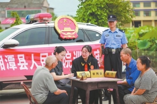 花石法庭與當(dāng)?shù)厮痉ㄋ?、派出所、律師事?wù)所聯(lián)合村委會(huì)就該案開展了分析研判,多次組織雙方當(dāng)事人協(xié)商,一直未達(dá)成協(xié)議。為避免糾紛久拖不決,同時(shí)考慮到雙方是幾十年的鄰居,法官?zèng)Q定將庭審“搬”至當(dāng)事人家門口。