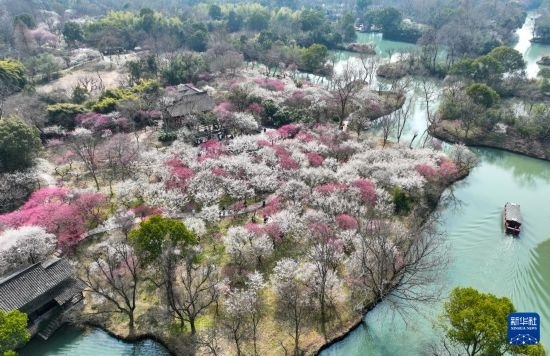 近日,浙江杭州西溪濕地梅花進入盛花期。據悉,西溪濕地現(xiàn)有梅樹25000余株,形成一條長約12公里的水上賞梅景觀線。