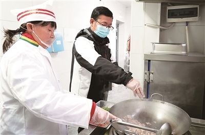 10點(diǎn)30分,記者來(lái)到福壽苑養(yǎng)老服務(wù)驛站,剛出鍋的咖喱雞塊、熘肉段、海帶冬瓜、裙帶菜豆腐等菜品香氣撲鼻,老年食堂已經(jīng)熱鬧了起來(lái),老人陸續(xù)開(kāi)始排隊(duì)打菜。記者與馬志鵬領(lǐng)到2個(gè)配送任務(wù),一位是家住西壩河南里社區(qū)7號(hào)樓的趙老先生,另一位是家住柳芳北里社區(qū)3號(hào)樓的蔣老先生。