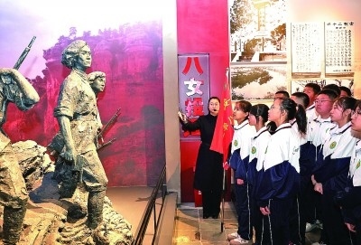 4月3日,遼寧省本溪市本溪滿(mǎn)族自治縣抗聯(lián)中學(xué)的學(xué)生在東北抗聯(lián)史實(shí)陳列館參觀(guān)。新華社記者 李鋼攝