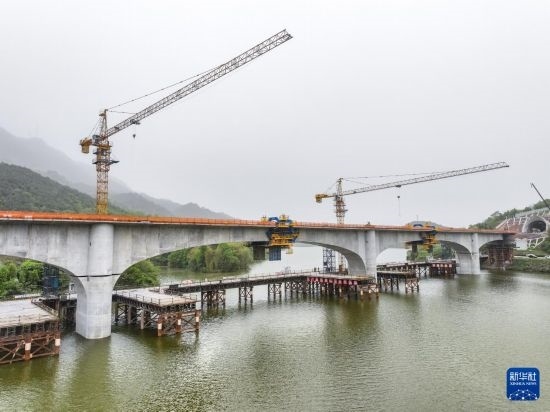 4月12日,由中鐵五局承建的成渝中線高鐵全線控制性工程玄天湖雙線大橋順利合龍。玄天湖雙線大橋全長(zhǎng)460.561米,位于重慶市銅梁區(qū)玄天湖4A級(jí)景區(qū)內(nèi),環(huán)保要求高,施工難度大。