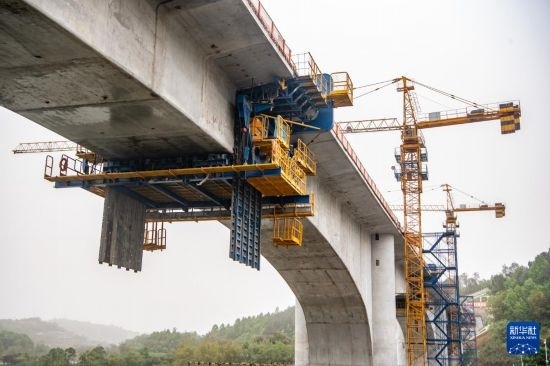 這是4月12日拍攝的合龍后的成渝中線高鐵玄天湖雙線大橋。