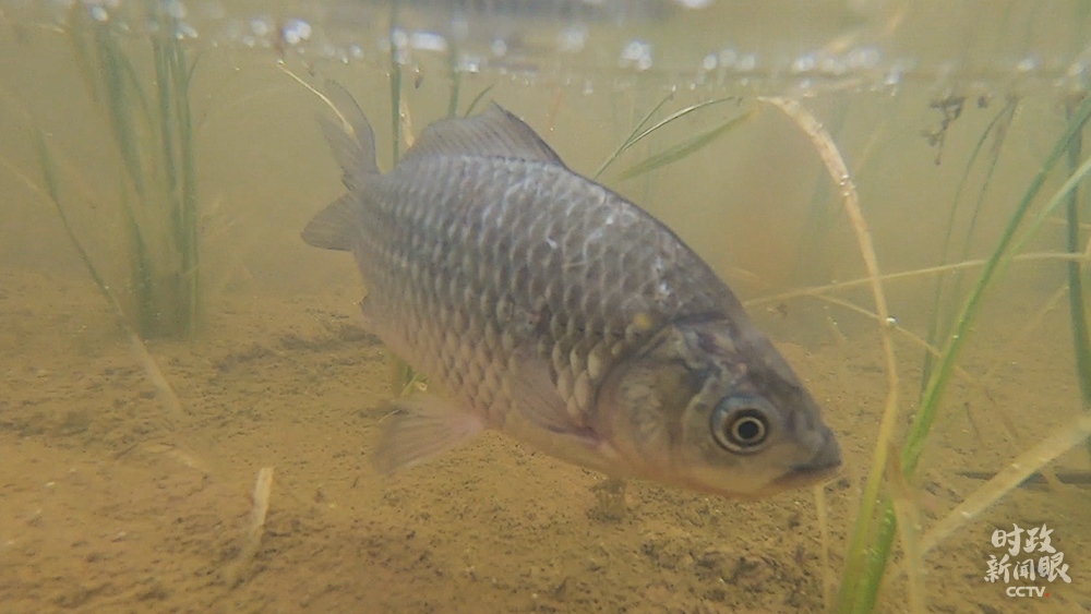 △魚蝦蟹在稻田里游動(dòng),既松動(dòng)泥土幫助水稻生長(zhǎng),又能提供肥料。(總臺(tái)央視記者范凱拍攝)