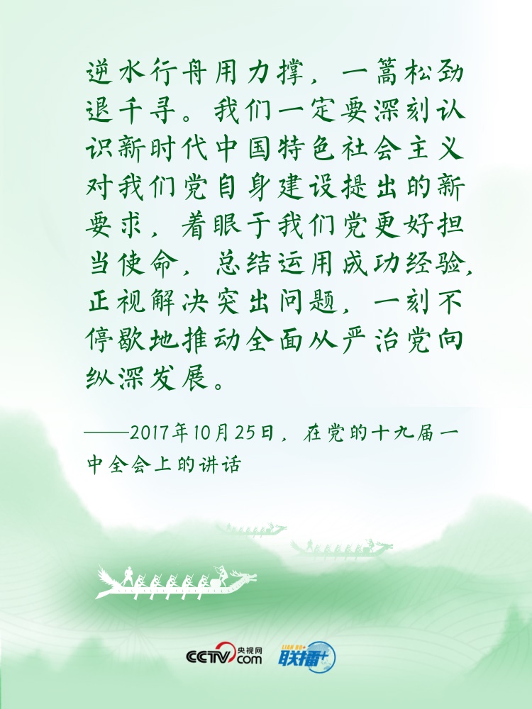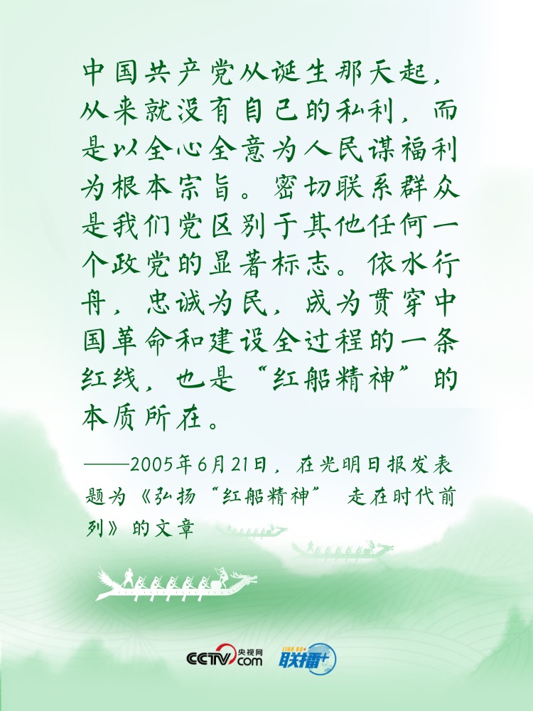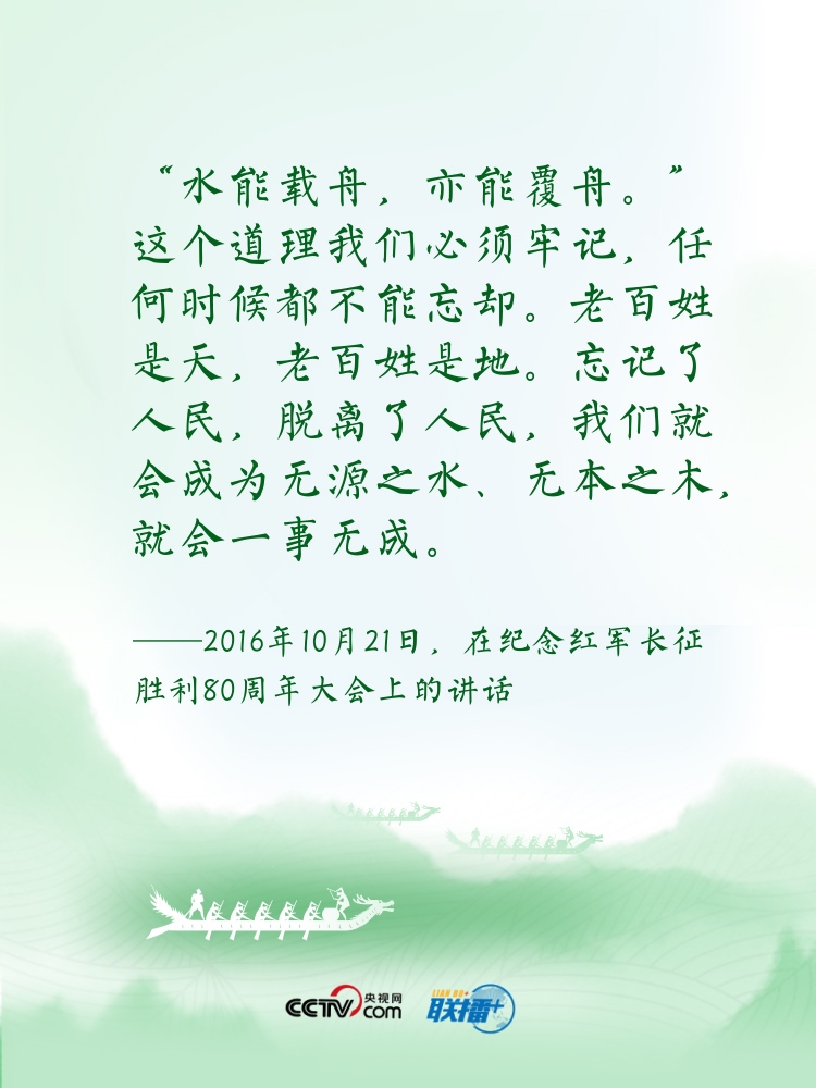 過(guò)端午,賽龍舟。龍舟這項(xiàng)傳統(tǒng)運(yùn)動(dòng),象征著中華民族的拼搏、堅(jiān)韌、團(tuán)結(jié),承載著深植在民族基因里的愛(ài)國(guó)主義之魂。“舟”字自古以來(lái)在中華傳統(tǒng)文化中都有著深刻寓意。“依水行舟,忠誠(chéng)為民”“逆水行舟,不進(jìn)則退”......習(xí)近平總書(shū)記曾多次以“舟”為喻闡釋思想,寄情言志。央視網(wǎng)《聯(lián)播+》特進(jìn)行梳理,讓我們沿著總書(shū)記指引的方向,團(tuán)結(jié)奮進(jìn),砥礪前行?! ?/p>