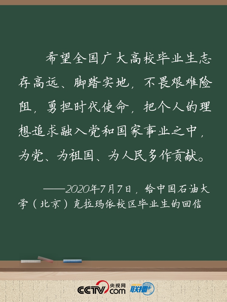 7月7日,習(xí)近平總書(shū)記給中國(guó)石油大學(xué)(北京)克拉瑪依校區(qū)畢業(yè)生回信,肯定他們到邊疆基層工作的選擇,并對(duì)廣大高校畢業(yè)生提出殷切期望。