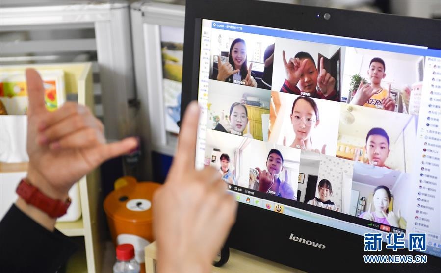位于吉林省長春市的東北師范大學(xué)第二附屬小學(xué)6年級(jí)學(xué)生參加“云班會(huì)”(5月29日攝)。新華社記者許暢攝