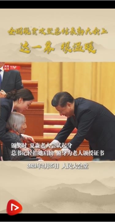 習(xí)近平在總結(jié)表彰大會(huì)上莊嚴(yán)宣告:“經(jīng)過(guò)全黨全國(guó)各族人民共同努力,在迎來(lái)中國(guó)共產(chǎn)黨成立一百周年的重要時(shí)刻,我國(guó)脫貧攻堅(jiān)戰(zhàn)取得了全面勝利!”