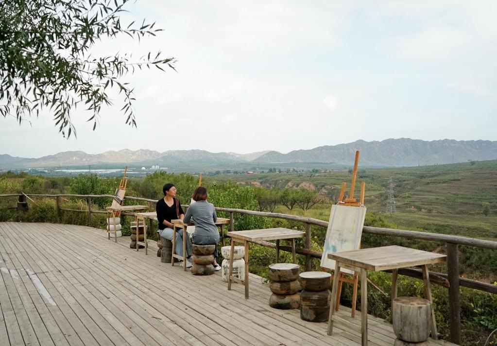9月26日,游客在涿鹿縣黃帝城低碳文旅小鎮(zhèn)內(nèi)休閑。新華社記者 牟宇 攝