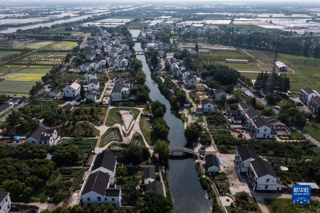 空中俯瞰浙江省嘉興市嘉善縣姚莊鎮(zhèn)橫港村(2021年7月12日攝,無人機(jī)照片)。近年來,嘉善縣建設(shè)高標(biāo)準(zhǔn)農(nóng)田14.8萬畝;同時(shí)建設(shè)產(chǎn)業(yè)幫扶聯(lián)合體、農(nóng)業(yè)社會(huì)化服務(wù)綜合體等,不斷拓寬農(nóng)民增收致富渠道,走出了一條城鄉(xiāng)深度融合推動(dòng)共同富裕的實(shí)踐路子。新華社記者徐昱攝