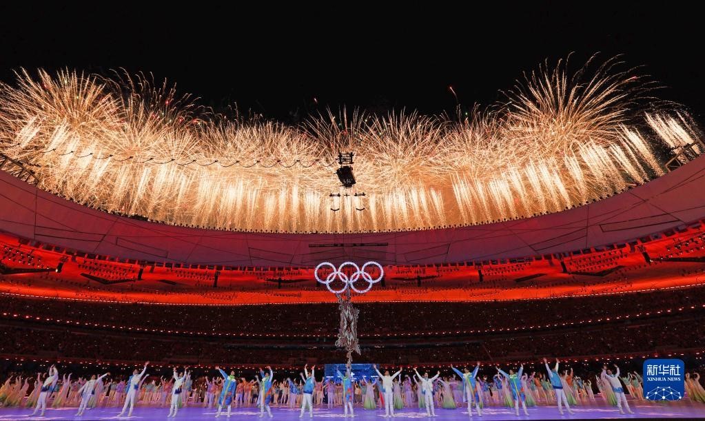 2022年2月20日晚,北京第二十四屆冬季奧林匹克運(yùn)動(dòng)會(huì)閉幕式在國家體育場舉行。這是焰火表演。新華社記者曹燦攝