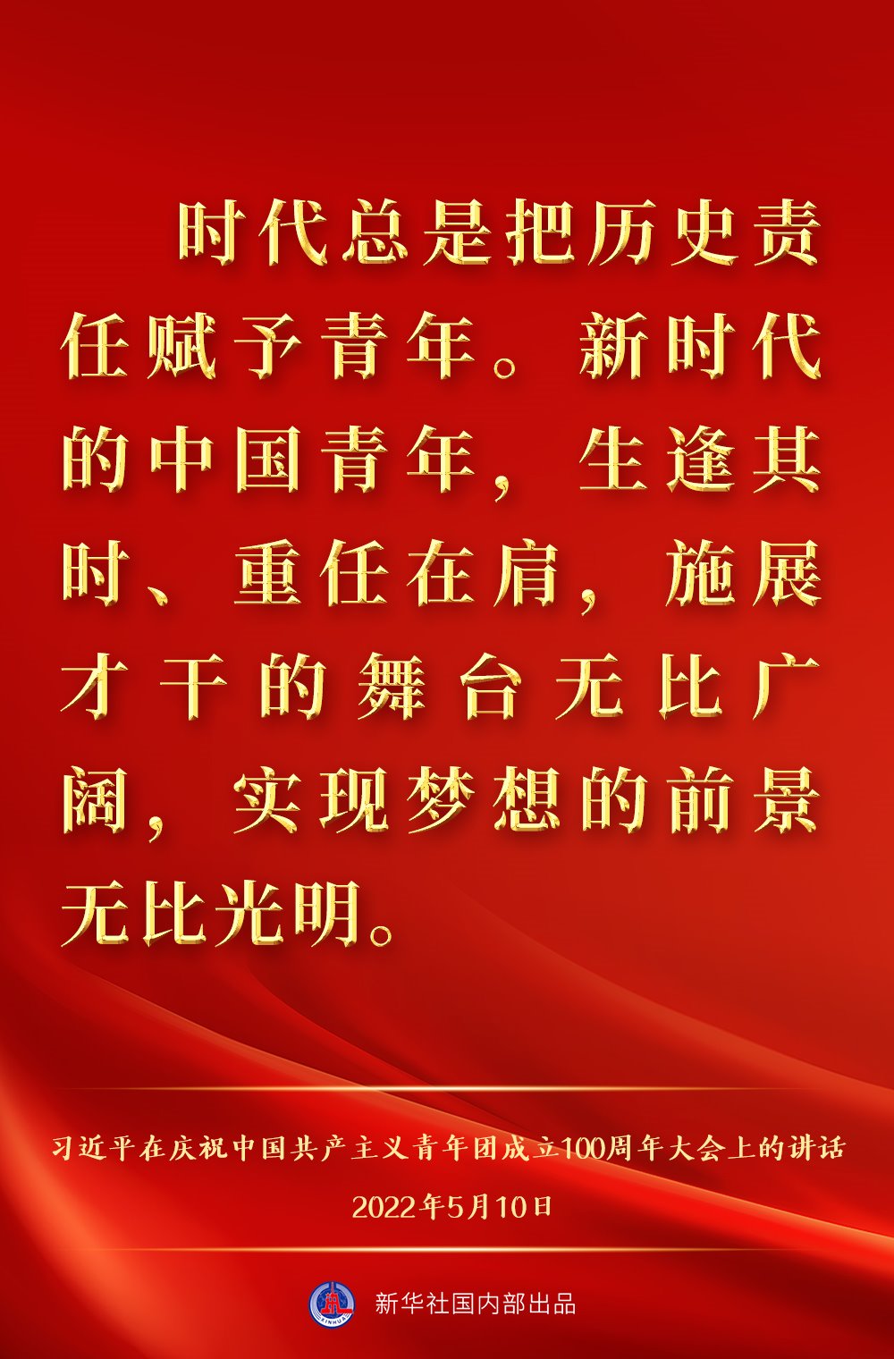 5月10日上午,中共中央總書記、國家主席、中央軍委主席習近平出席慶祝中國共產(chǎn)主義青年團成立100周年大會并發(fā)表重要講話,一起來看金句。
