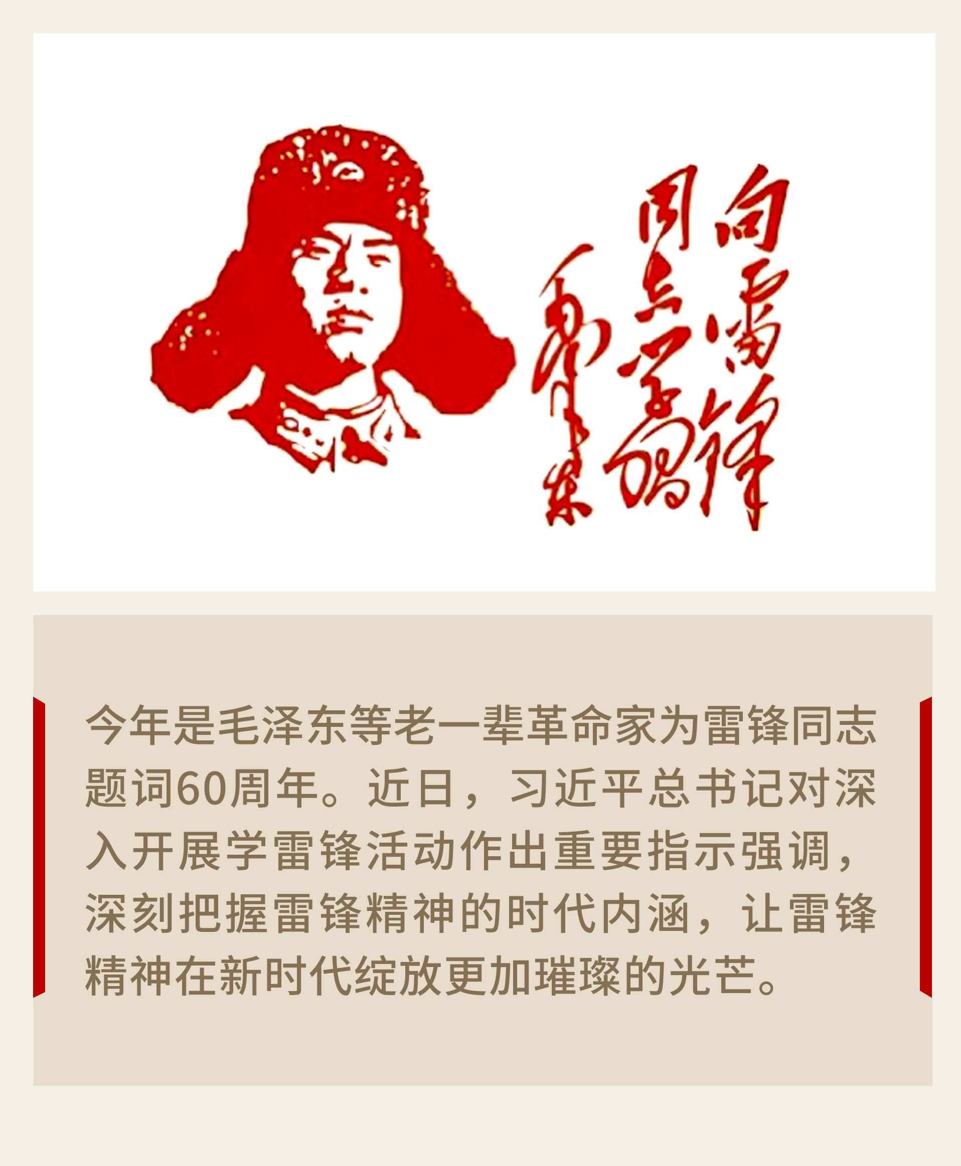 1963年3月5日,毛澤東“向雷鋒同志學(xué)習(xí)”題詞發(fā)表。隨后,劉少奇、周恩來、朱德、鄧小平等老一輩革命家也相繼題詞,發(fā)出學(xué)習(xí)雷鋒的偉大號(hào)召。
