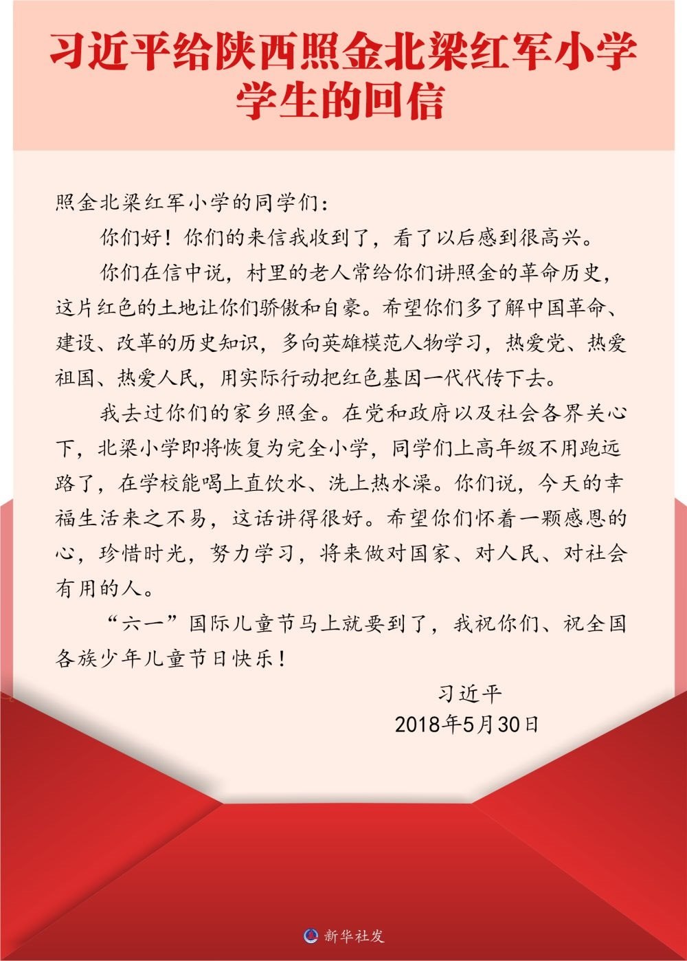 北京市八一學(xué)校是習(xí)近平總書記的母校。2016年底,八一學(xué)校的學(xué)生們給習(xí)近平總書記寫信,報告了他們參與設(shè)計研制的科普小衛(wèi)星即將發(fā)射的消息。很快,孩子們收到了總書記的回信。