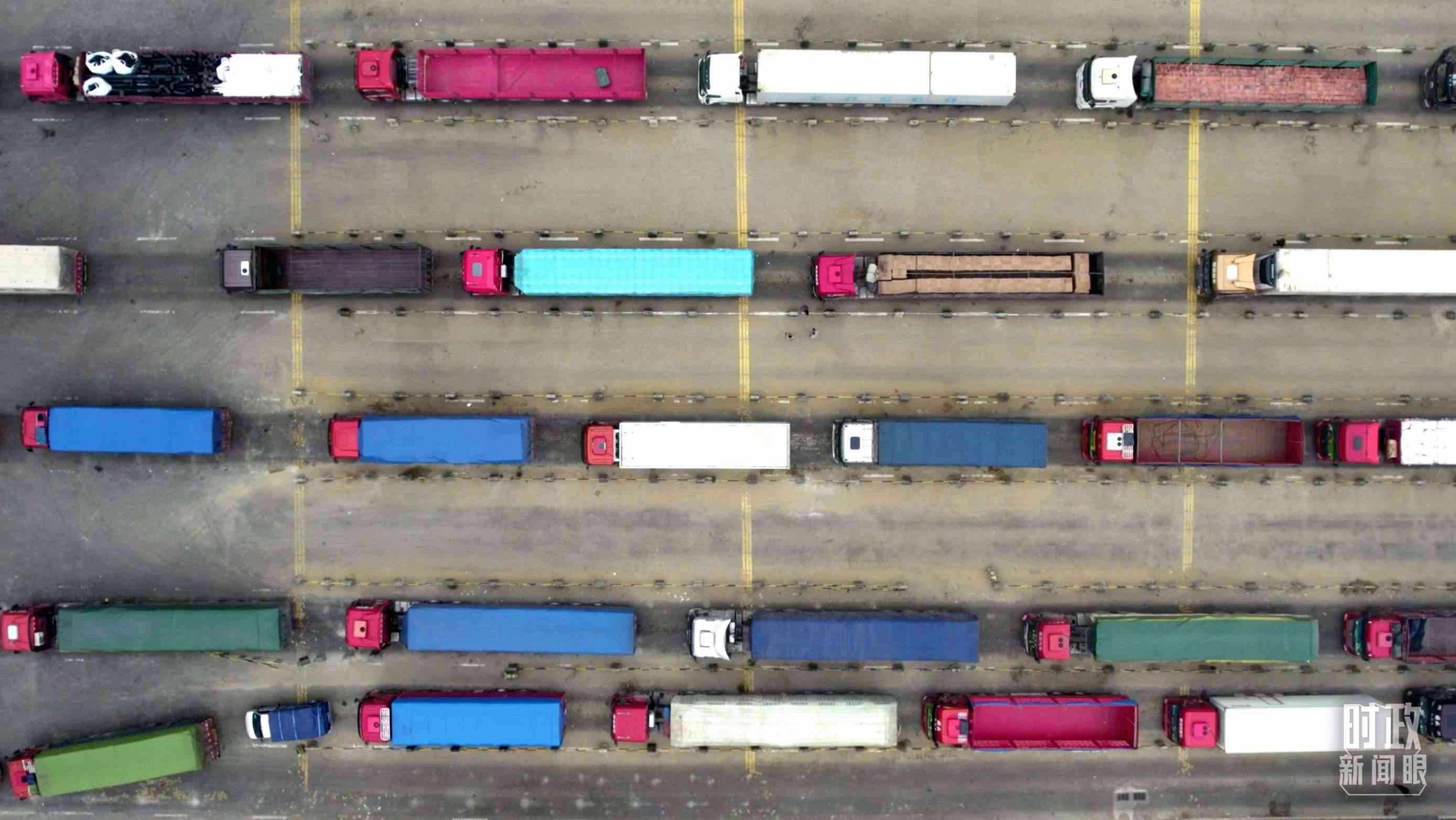 △徐聞港內(nèi)運(yùn)送貨物的車(chē)隊(duì)。(總臺(tái)央視記者范凱拍攝)