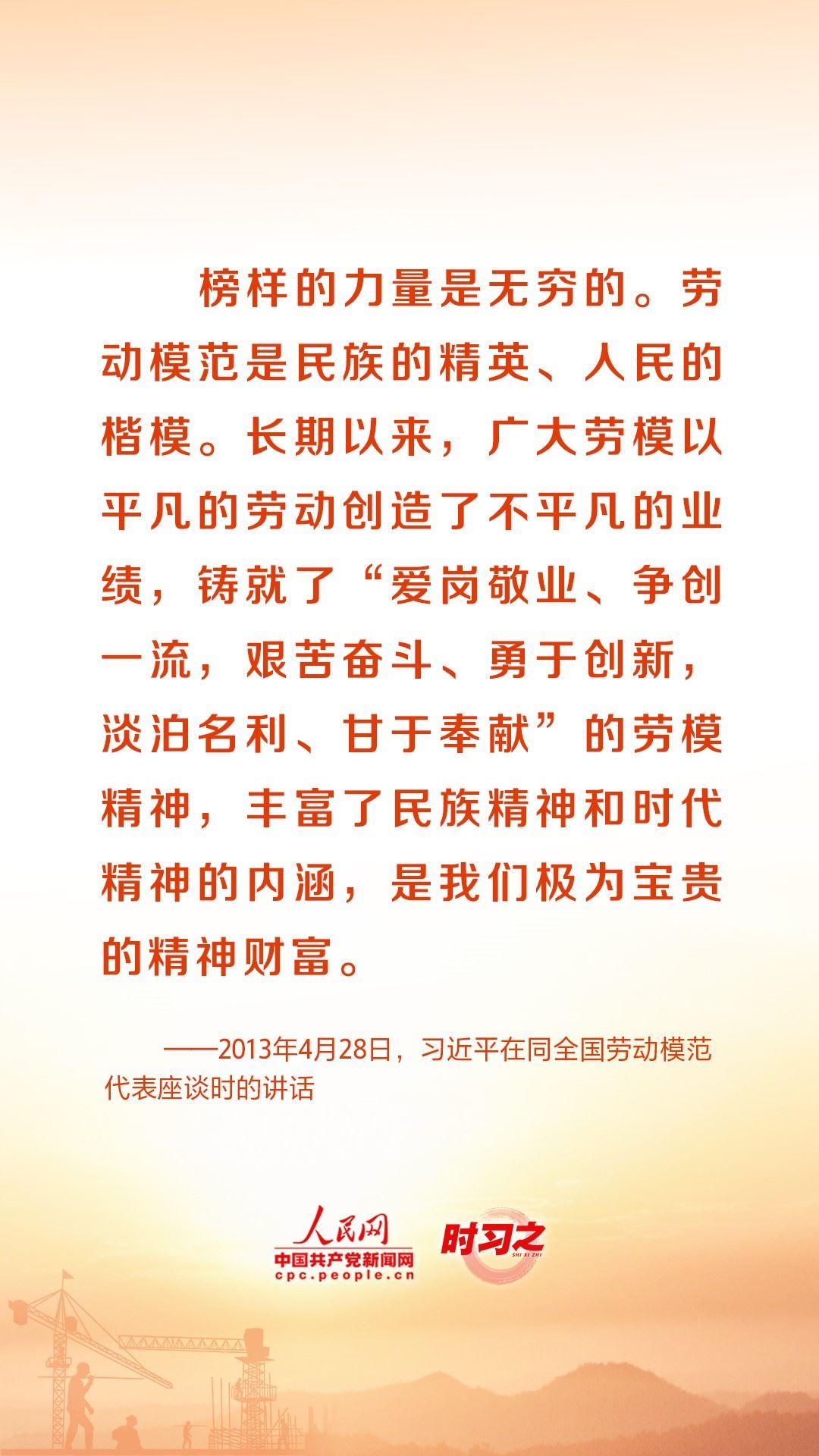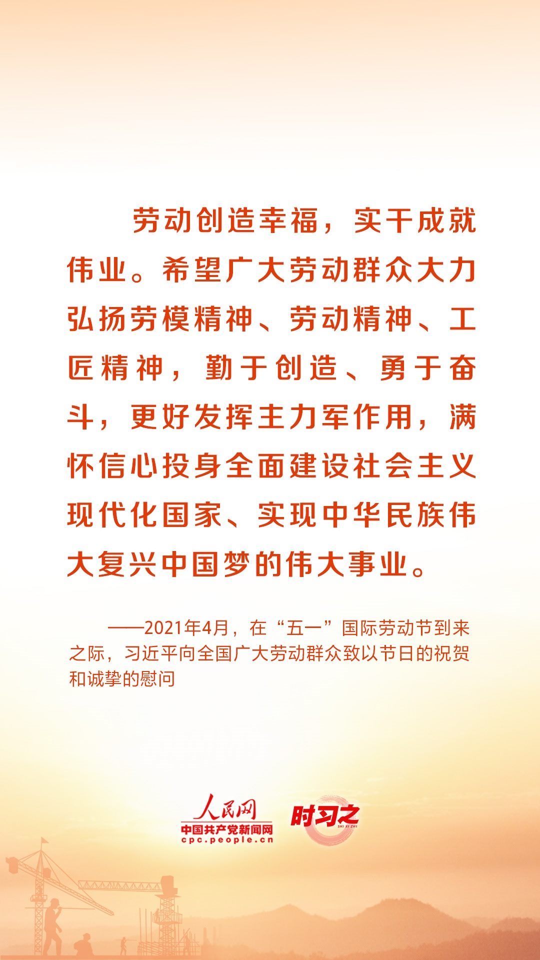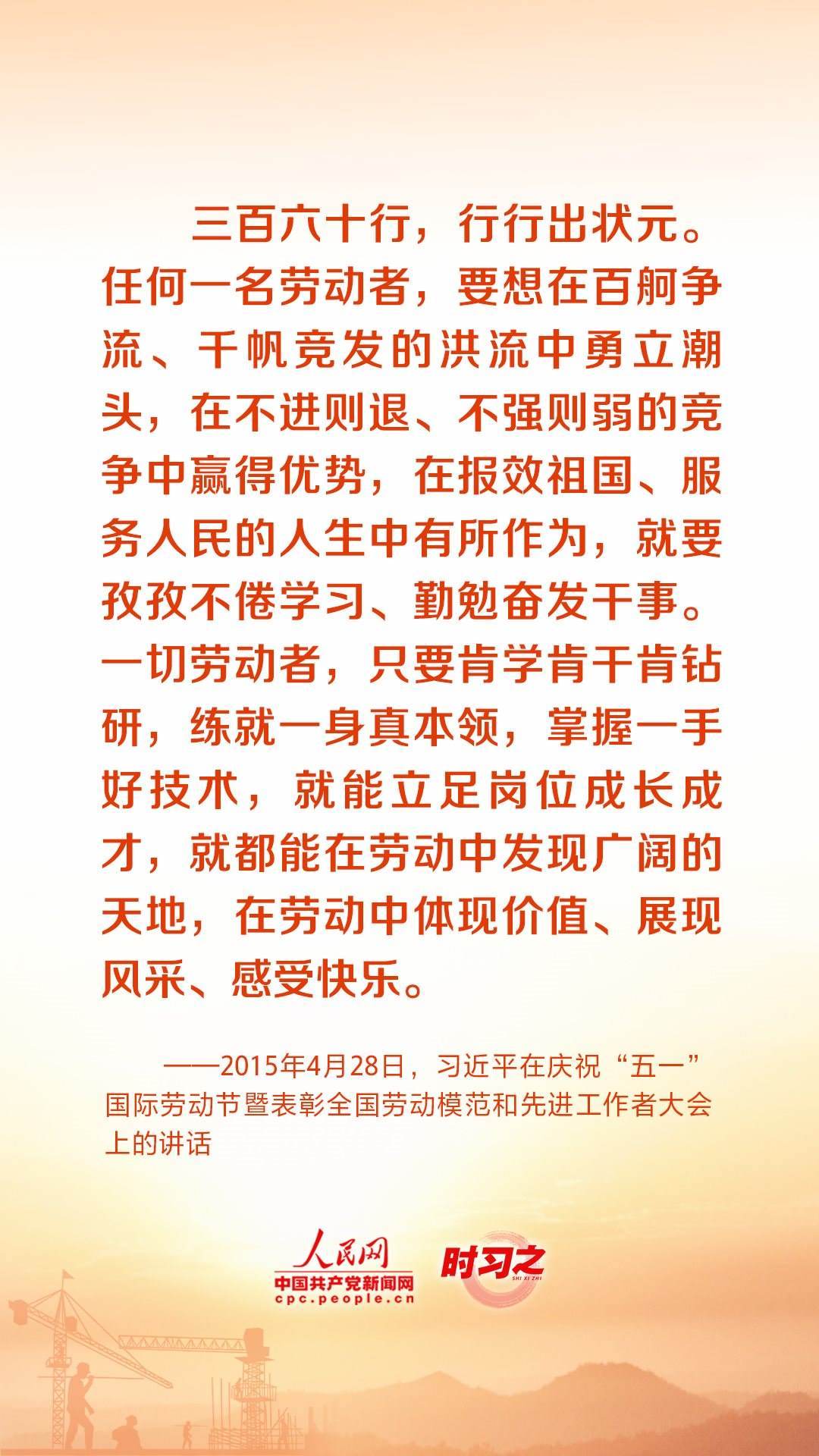 人民創(chuàng)造歷史,勞動(dòng)開創(chuàng)未來(lái)。黨的十八大以來(lái),習(xí)近平總書記始終心系全國(guó)廣大勞動(dòng)者,激勵(lì)廣大勞動(dòng)者在平凡崗位上續(xù)寫不平凡的故事。在“五一”國(guó)際勞動(dòng)節(jié)到來(lái)之際,讓我們重溫總書記的諄諄話語(yǔ),用辛勤勞動(dòng)為經(jīng)濟(jì)社會(huì)發(fā)展貢獻(xiàn)力量。