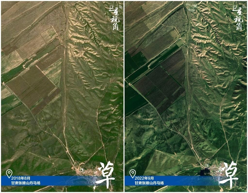 ↑2022年跟2018年相比,山丹馬場(chǎng)草場(chǎng)植被蓋度顯著提高。