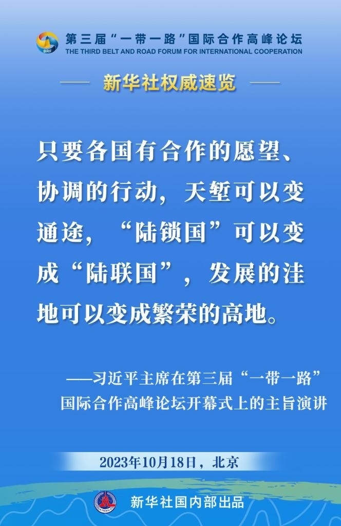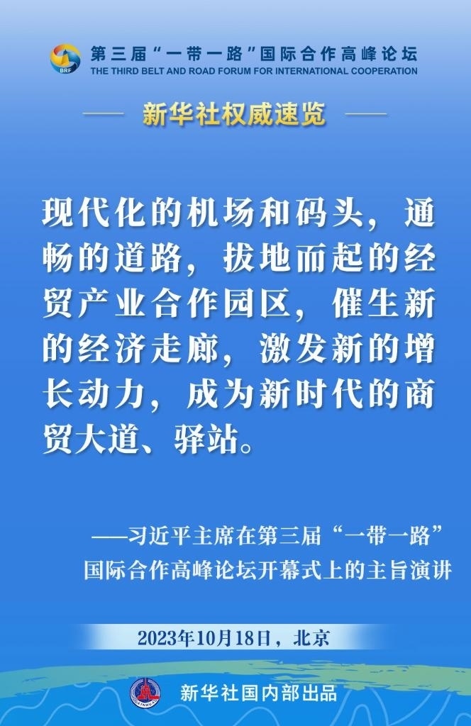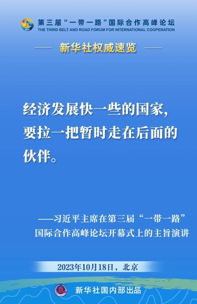 10月18日,國(guó)家主席習(xí)近平在第三屆“一帶一路”國(guó)際合作高峰論壇開(kāi)幕式上發(fā)表主旨演講。一起來(lái)看金句。
