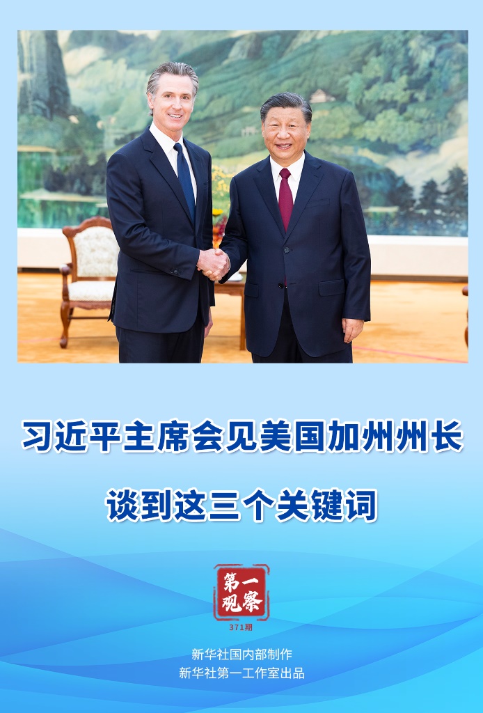 加利福尼亞,美國西海岸重要門戶,經(jīng)濟(jì)總量居全美各州首位,在對(duì)華友好交往和務(wù)實(shí)合作中長期走在全美前列。紐森此次于10月23日至29日訪華,是2020年以來第一位來訪的美國州長。在中美關(guān)系呈現(xiàn)止跌企穩(wěn)積極勢頭的關(guān)鍵時(shí)刻,習(xí)近平主席會(huì)見美國加州州長,備受中美兩國和國際社會(huì)關(guān)注。習(xí)近平主席談到的三個(gè)關(guān)鍵詞,飽含深意。