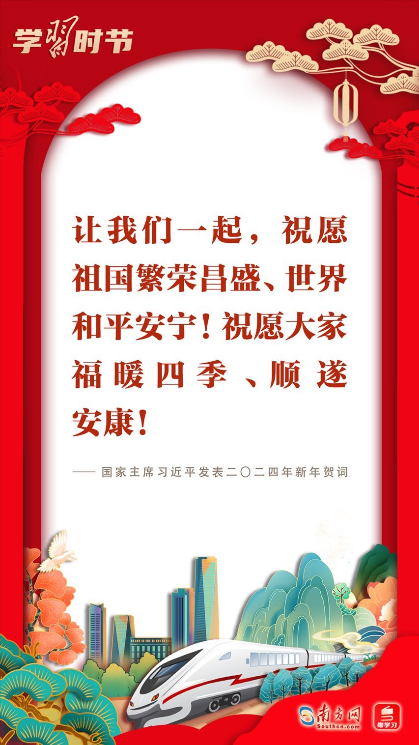 2023年12月31日晚,國(guó)家主席習(xí)近平在北京發(fā)表二〇二四年新年賀詞。賀詞飽含對(duì)廣大人民群眾的深情,彰顯對(duì)中國(guó)發(fā)展的堅(jiān)定信心?;厥走^往,展望未來;砥礪前行,征程再起。讓我們一起在習(xí)近平主席的新年賀詞中感受直抵心靈的溫暖、催人奮進(jìn)的力量!