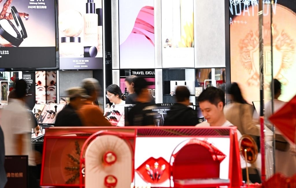 2023年10月28日,消費(fèi)者在位于海南省海口市的??趪H免稅城內(nèi)購物。新華社記者楊冠宇 攝