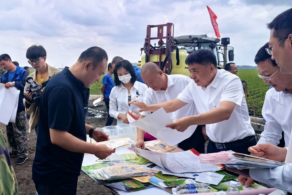 黑龍江省農業(yè)農村廳種植業(yè)管理處工作人員在哈爾濱市雙城區(qū)地頭,向農民發(fā)放科學用農藥資料(2023年6月11日攝)。學習貫徹習近平新時代中國特色社會主義思想主題教育工作會議召開以來,黑龍江省農業(yè)農村廳種植業(yè)管理處將理論學習與實際工作相結合,深入“田間地頭”調查研究、深入推進“千萬噸糧食增產計劃”,助力黑龍江省當好維護國家糧食安全“壓艙石”,將主題教育成果融入到維護國家糧食安全的具體實踐中。新華社發(fā)