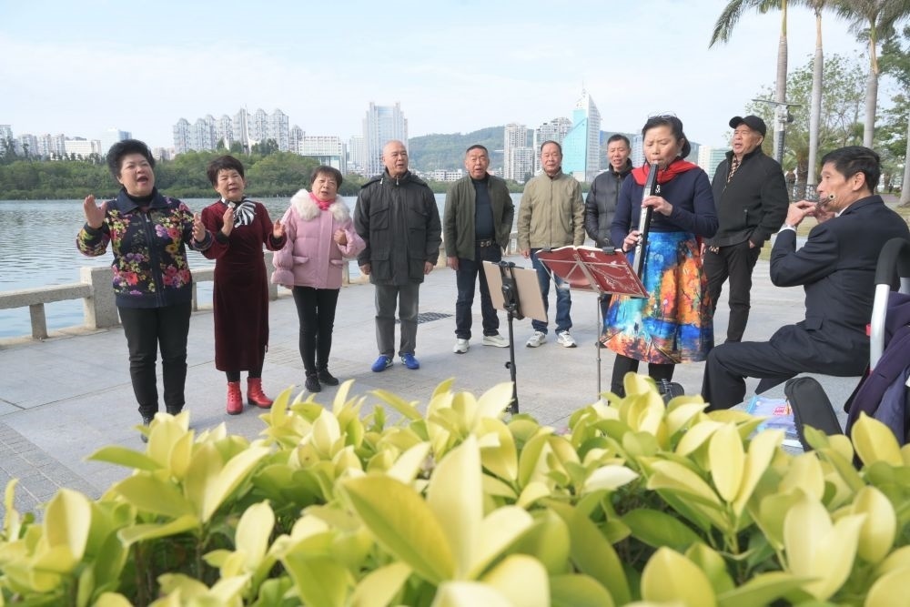 2024年1月24日,市民在位于廈門筼筜湖邊的南湖公園開(kāi)展娛樂(lè)活動(dòng)。新華社記者 林善傳 攝