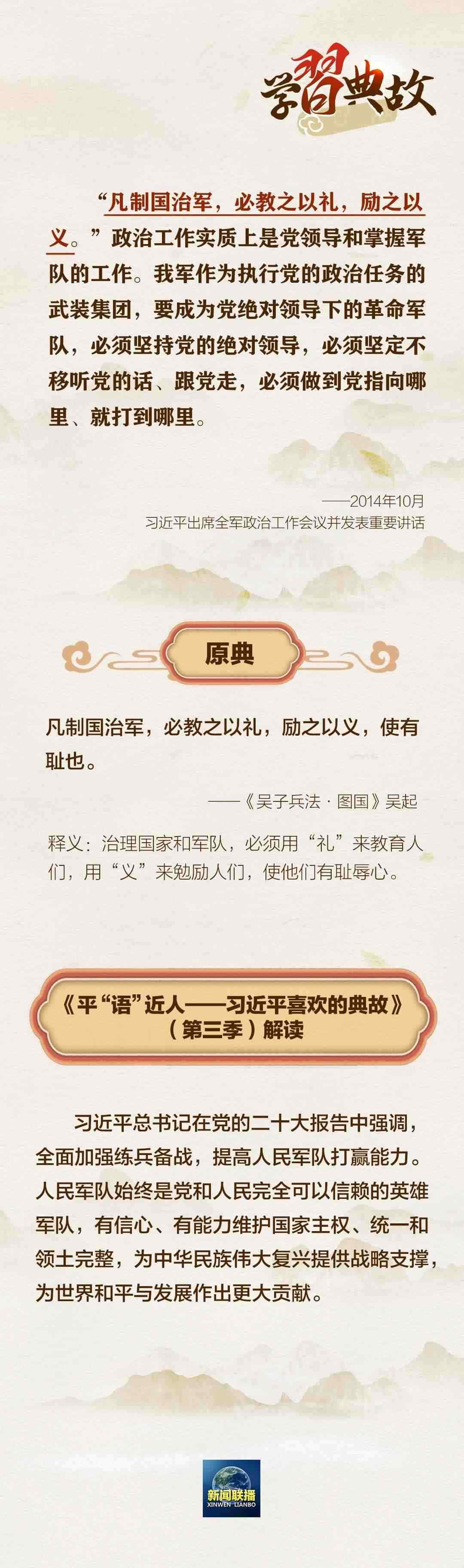 在黨的二十大報告中,習(xí)近平總書記強調(diào),“如期實現(xiàn)建軍一百年奮斗目標,加快把人民軍隊建成世界一流軍隊,是全面建設(shè)社會主義現(xiàn)代化國家的戰(zhàn)略要求?!眹@“強軍之路”這一主題,總書記曾講到哪些典故?一起學(xué)習(xí)↓↓↓