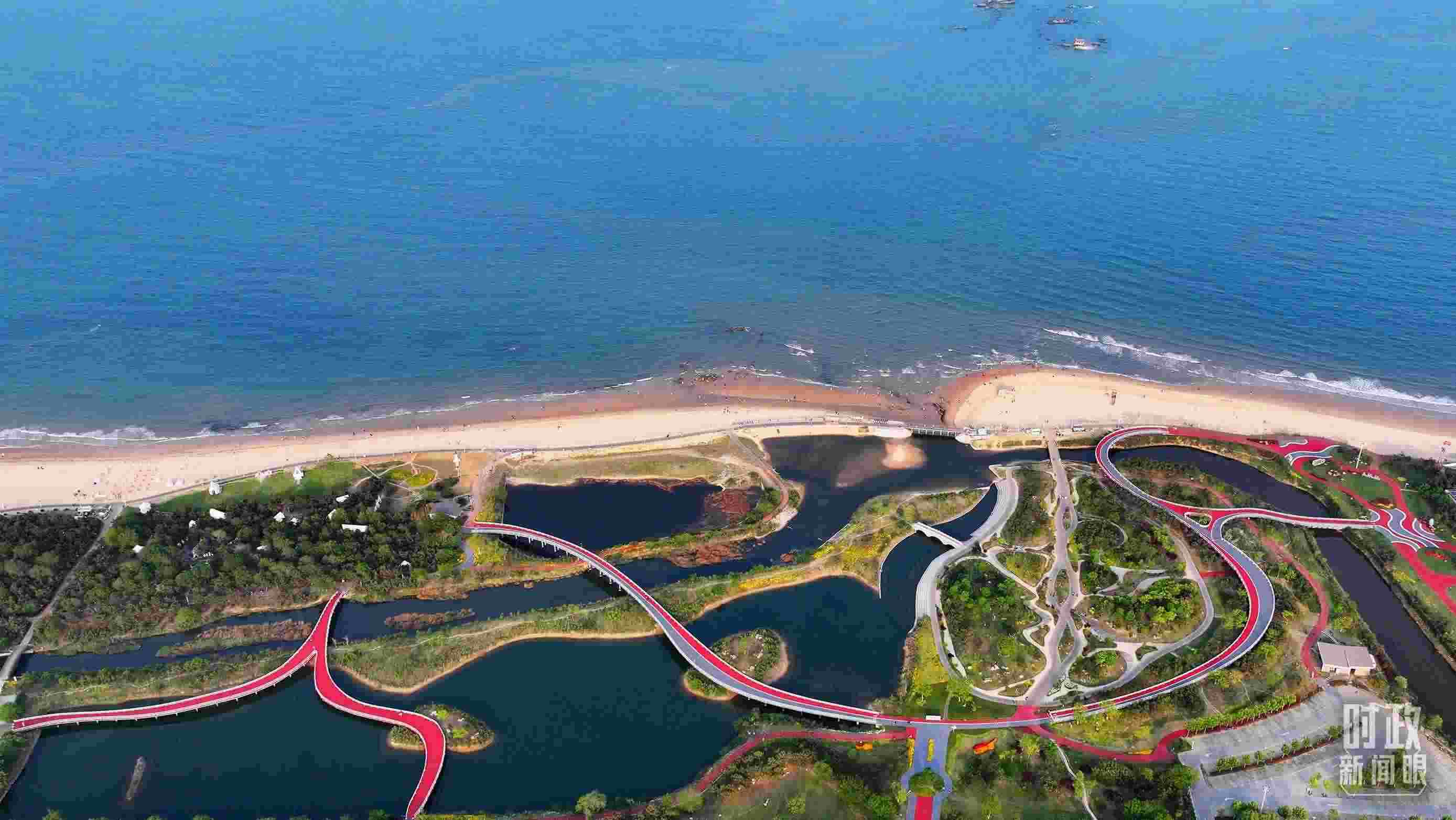這是一條功能復合、活力多元的陽光海岸帶,串聯(lián)起沿海岸線的萬平口景區(qū)、海洋公園、海洋美學館、桃花島景區(qū)等13個景區(qū),以及王家皂、張家臺等8個沿海民俗村,還建設有觀景平臺、運動步道、游客休憩廣場等。