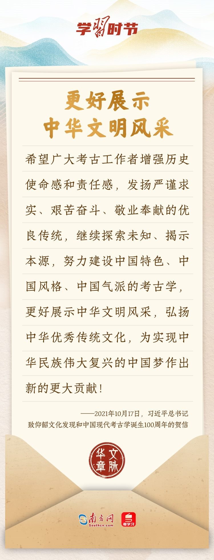 “中華民族在幾千年歷史中創(chuàng)造和延續(xù)的中華優(yōu)秀傳統(tǒng)文化,是中華民族的根和魂。”習(xí)近平總書記多次通過發(fā)賀信、寫回信等方式,表達著對弘揚中華優(yōu)秀傳統(tǒng)文化的殷切希望,飽含深情、字字暖心、催人奮進。讓我們一起“讀”信。