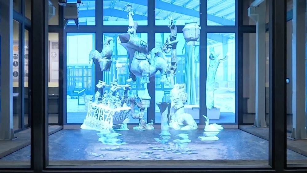 在一代一代考古工作者的手中,通天神樹、青銅縱目面具、青銅鳥足神像……這些昔日蒙塵的器物恢復了原本的熠熠光彩。隨著三星堆博物館新館建成投用,文化與科技在這里充分融合。