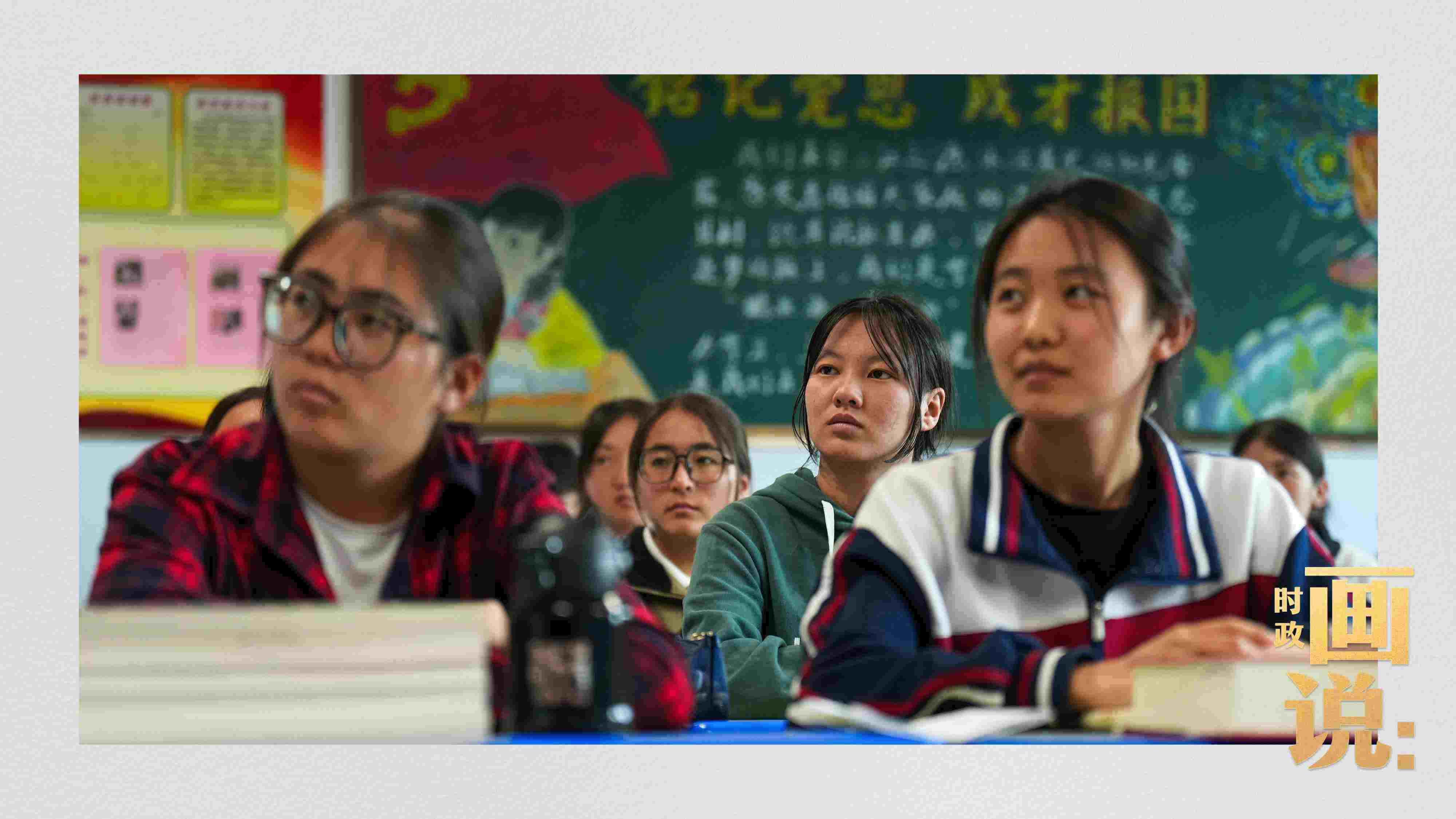 △高一(1)班學生肉昂吉和才央措姐妹一起描繪家鄉(xiāng)果洛的新變化。