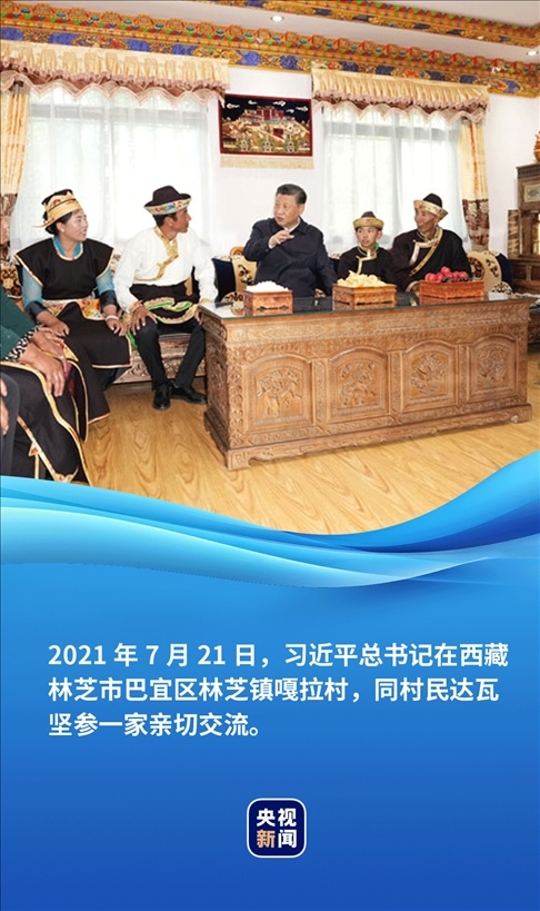 在同村民達(dá)瓦堅(jiān)參一家親切交流時(shí),總書(shū)記說(shuō):“鄉(xiāng)親們的好日子得益于黨和國(guó)家的好政策,也是你們自己用勤勞的雙手創(chuàng)造的。要落實(shí)好黨中央支持西藏發(fā)展政策,全面推進(jìn)鄉(xiāng)村振興。”
